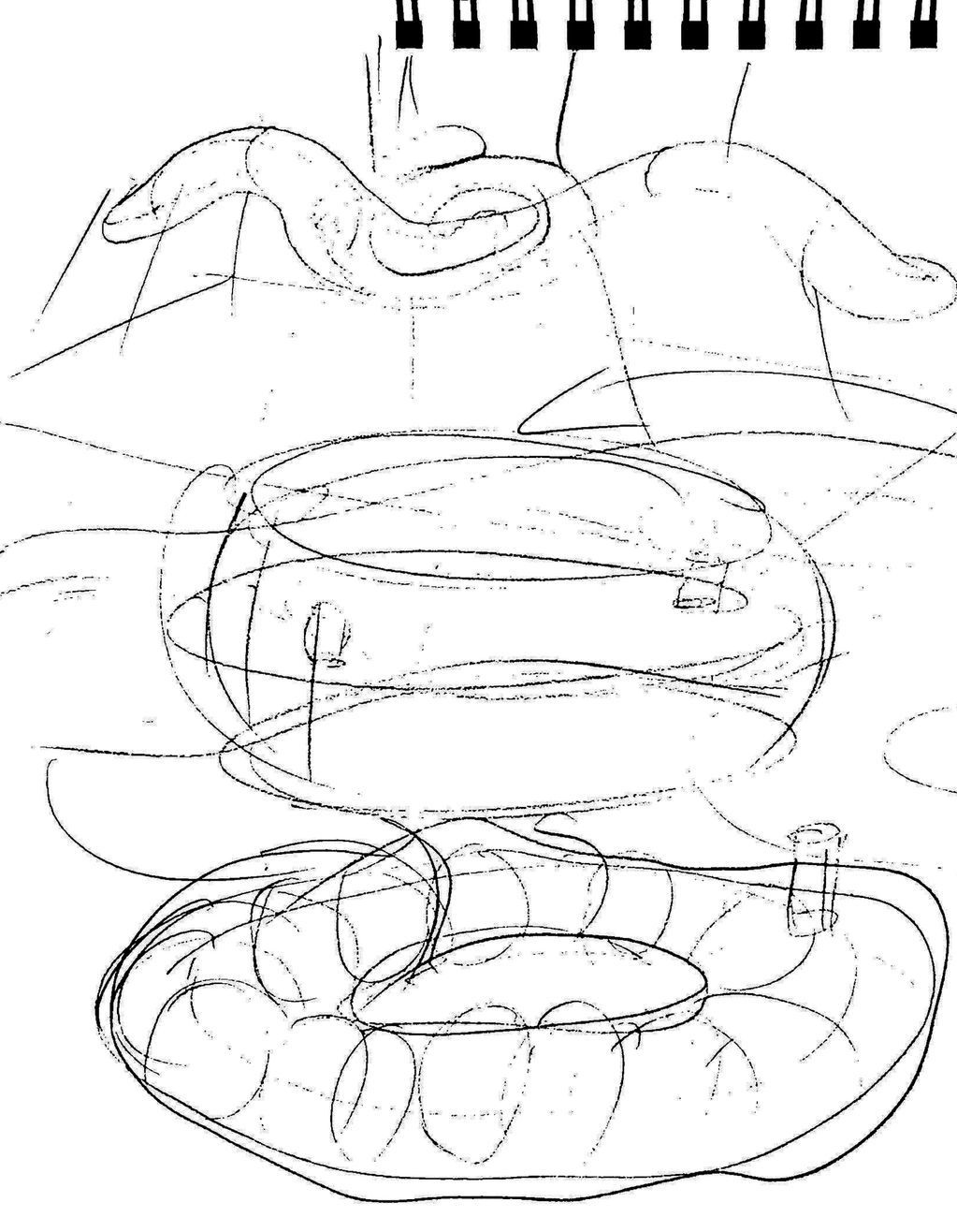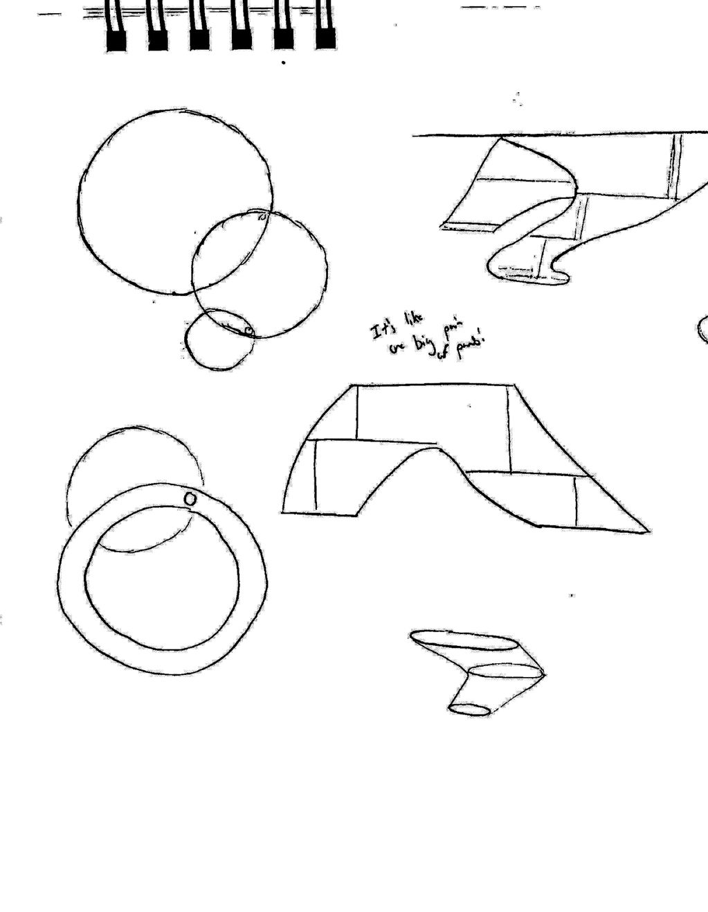 A few ideation sketches from my professor that pushed me away from the idea above and more towards a coiling tube solution.